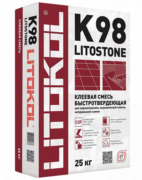 LITOSTONE K98, клей быстротвердеющий для плитки, керамогранита и камня (класс С2 F)