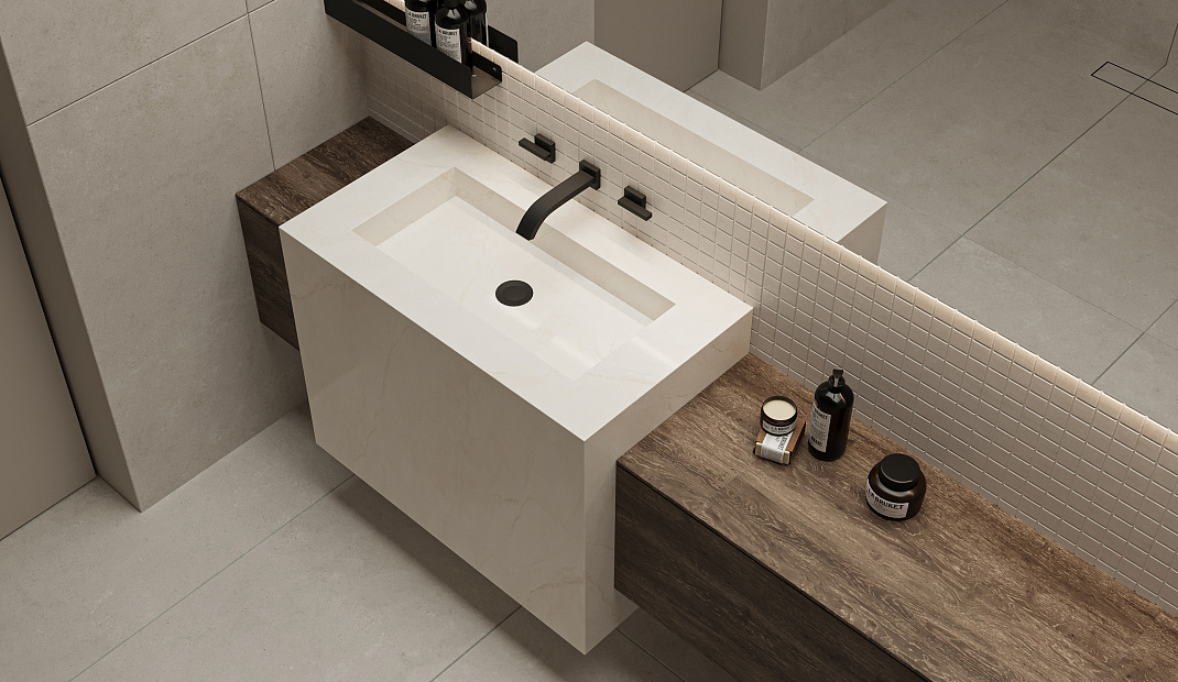 Едва заметные минералые прожилки создают эффект натурального камня, делая поверхность более живой и премиальной.