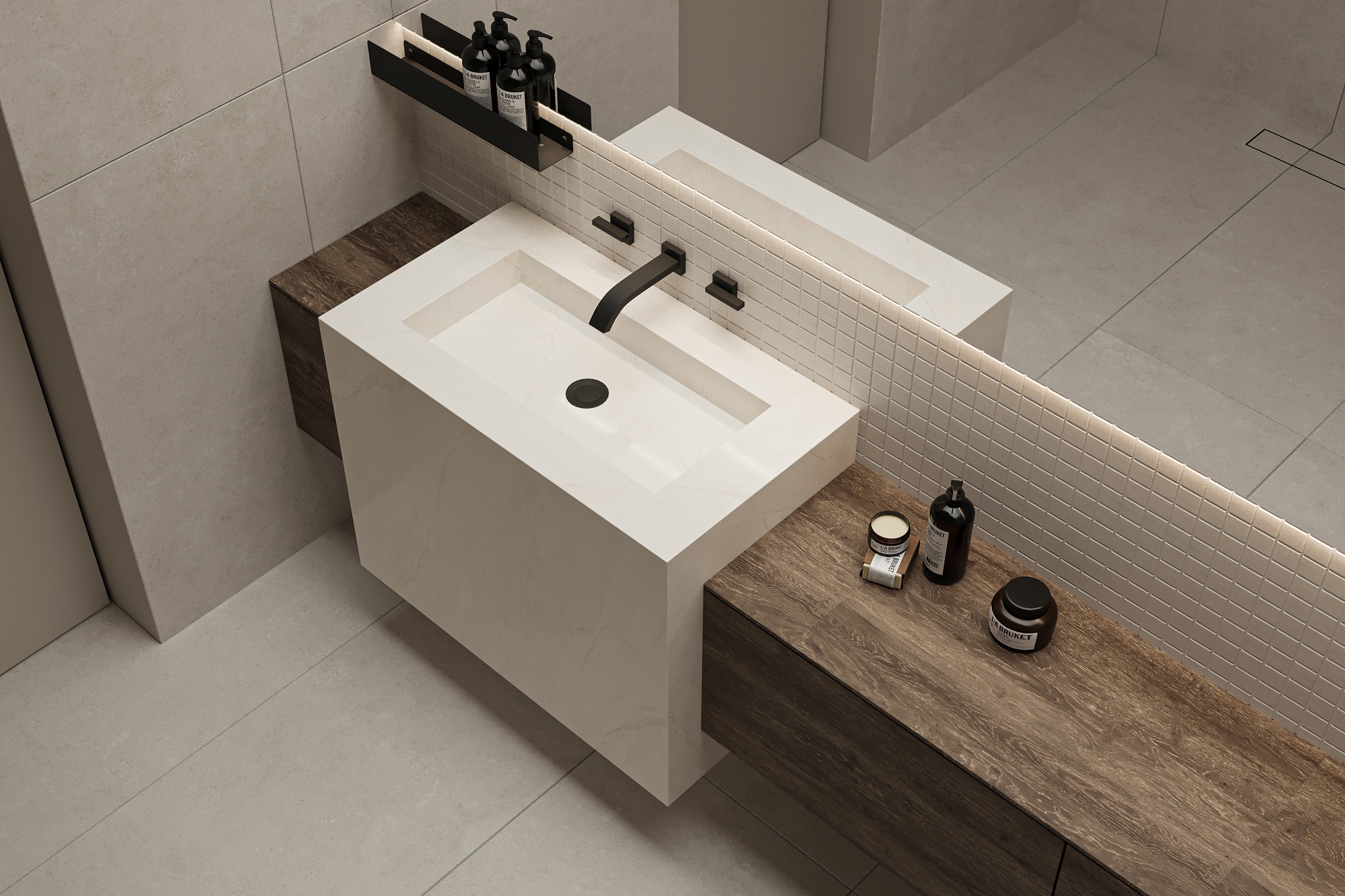 Крупный размер снижает количество швов, обеспечивает ровную геометрию и позволяет создавать цельные, современные поверхности.